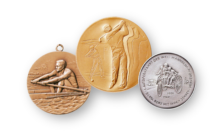 Mit Medaillen von B.H. Mayer’s, dem Hersteller aus Pforzheim, werden seit mehr als 145 Jahren Menschen für herausragende Leistungen ausgezeichnet. Unser Unternehmen entstand aus der 1871 gegründeten Kunstprägeanstalt und fertigt bis heute in der Goldstadt Pforzheim. Nutzen Sie unsere langjährige Erfahrung in der Prägung individueller Münzen, Orden und Plaketten und ehren Sie erfolgreiche Sportler wie engagierte Bürger und Mitarbeiter mit hochwertigen Medaillen vom Hersteller. weiterlesen